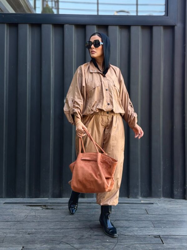 Modern, artistic and versatile. A two pieces set with an effortlessly stylish jacket and balloon pants