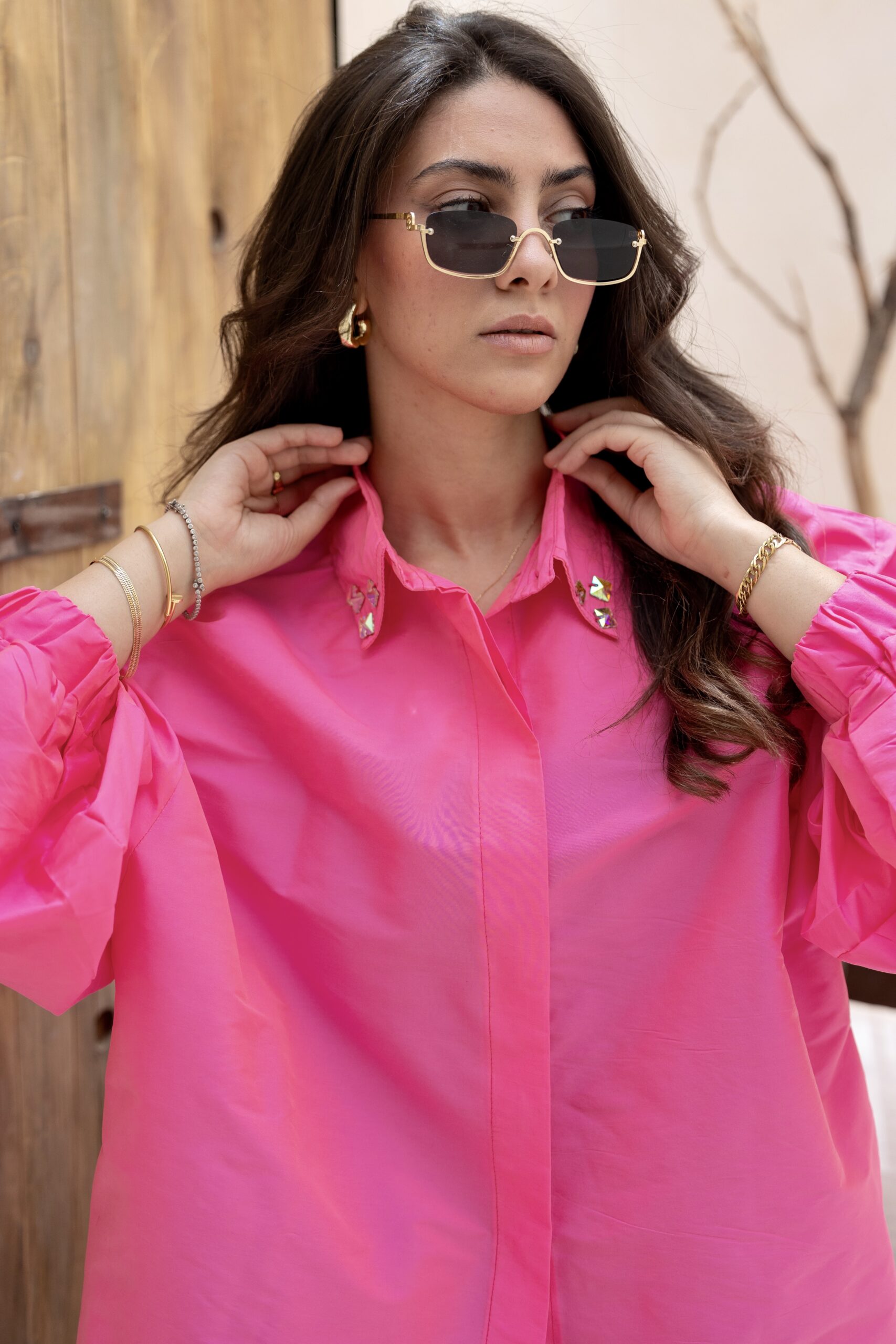 A Royal piece with crystal embellishments for your special occasions in exquisite taffeta fabric. The blouse comes in one size up to 80 kg