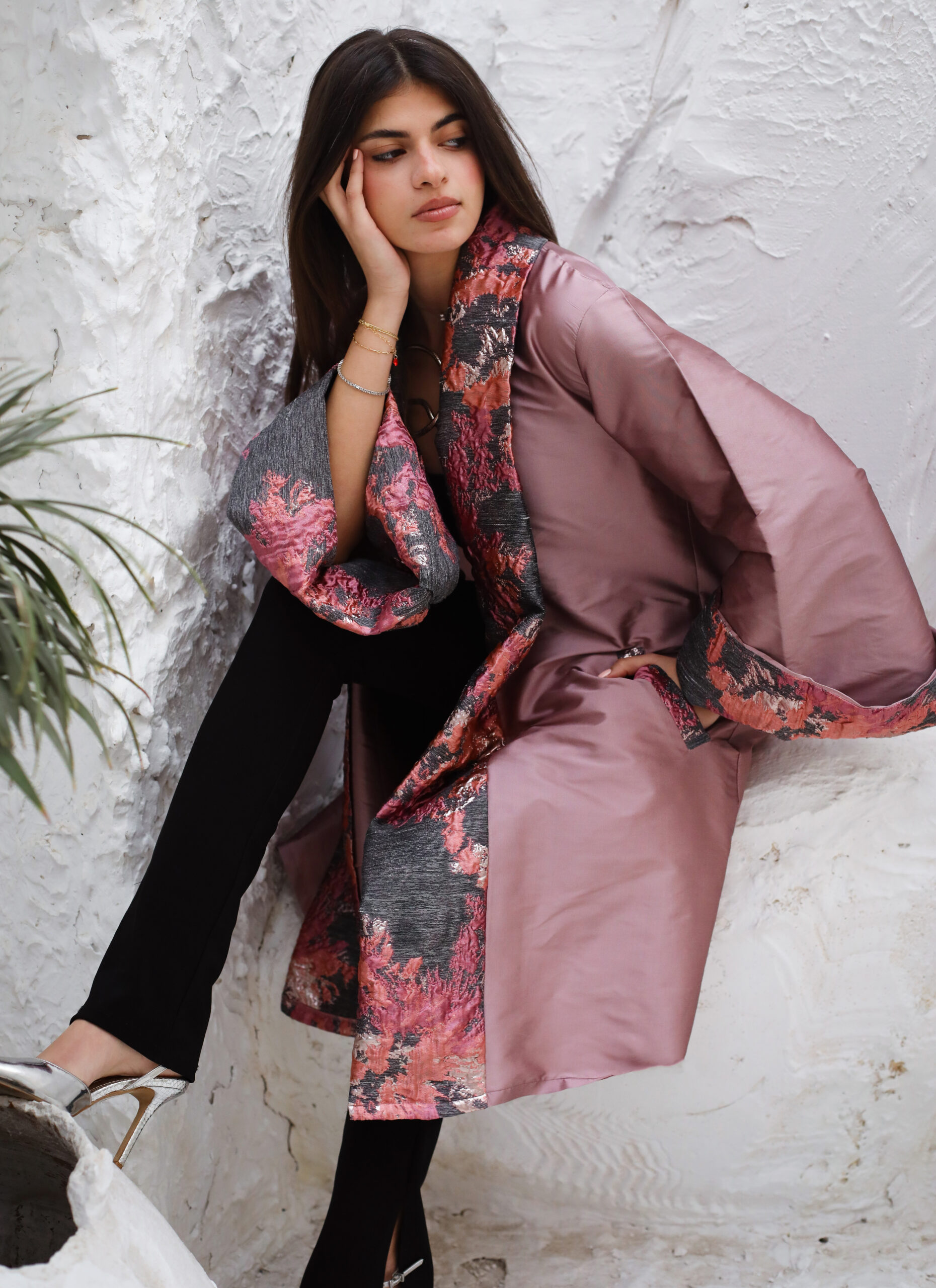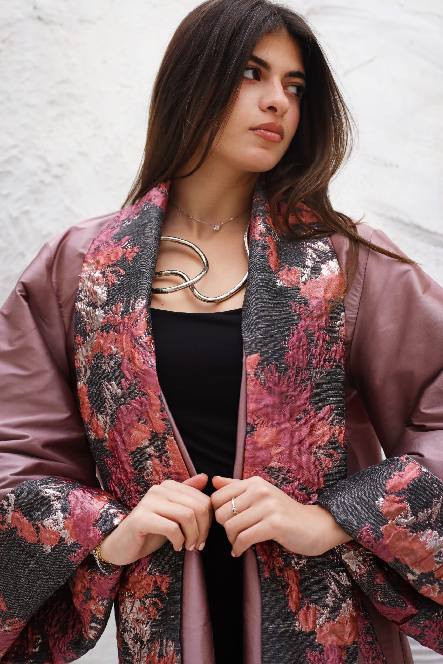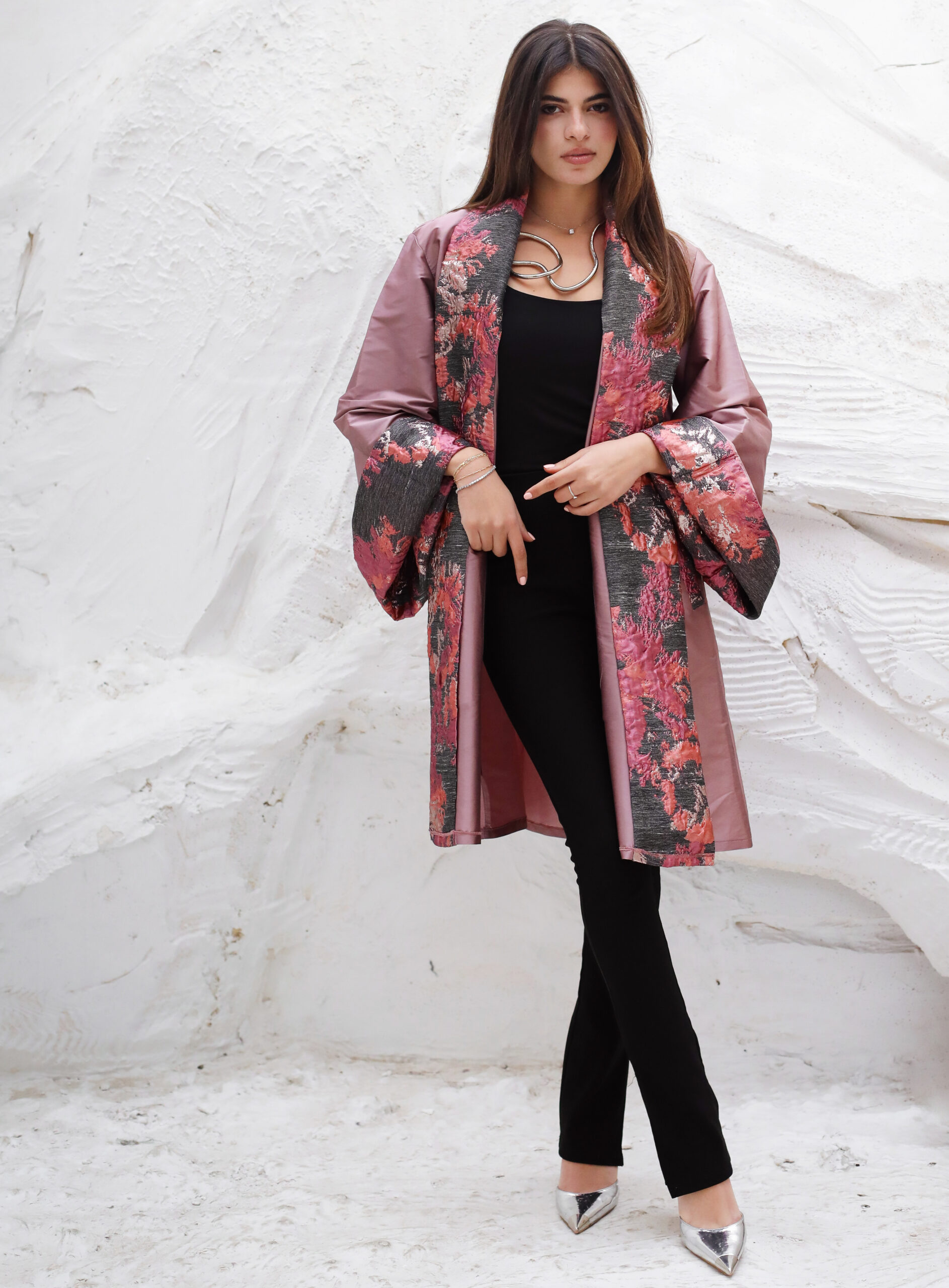 An elegant piece mixing Japanese kimono style with oriental vibes.