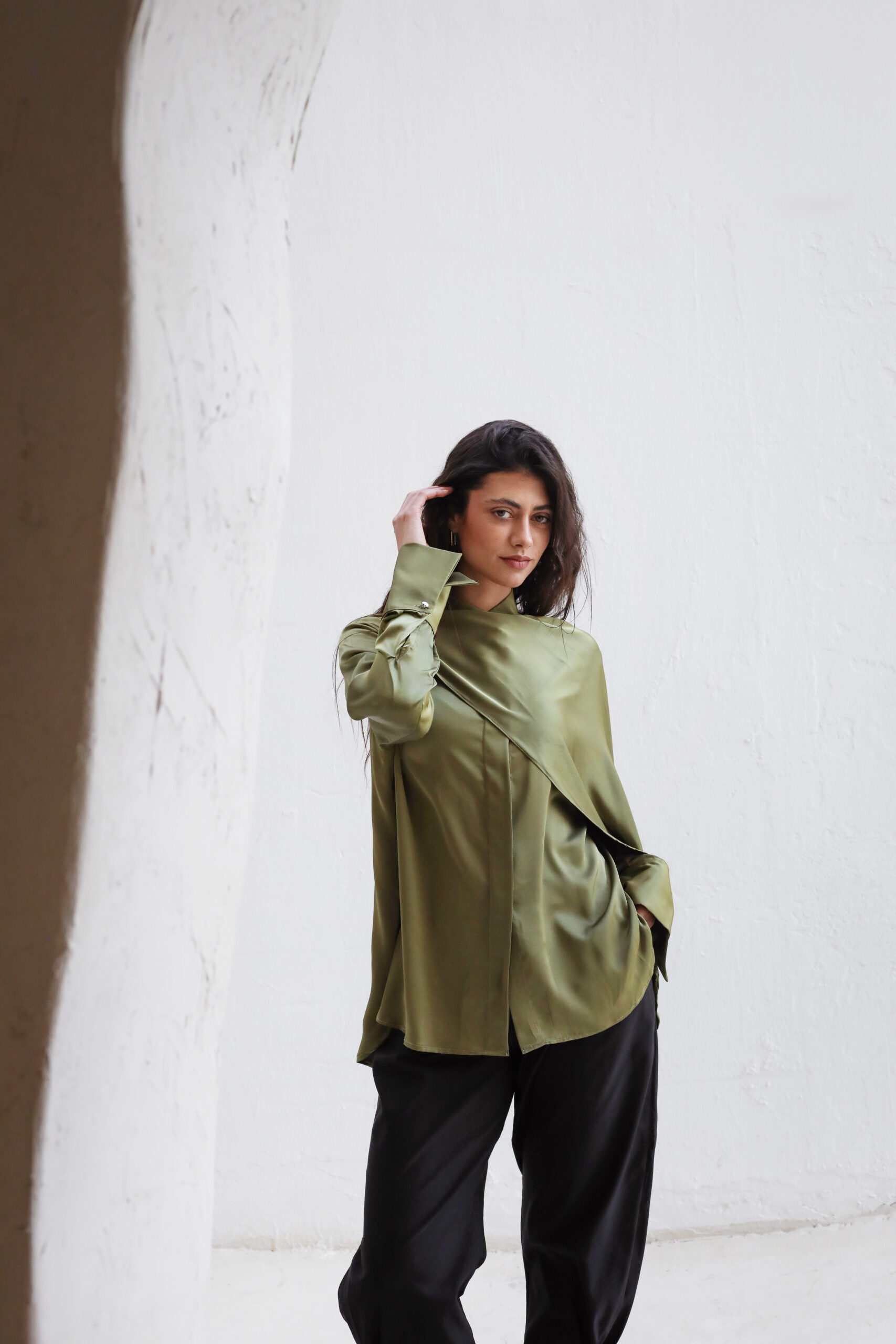 A soft and feminine top with an attached shawl , Fits till 80 kg