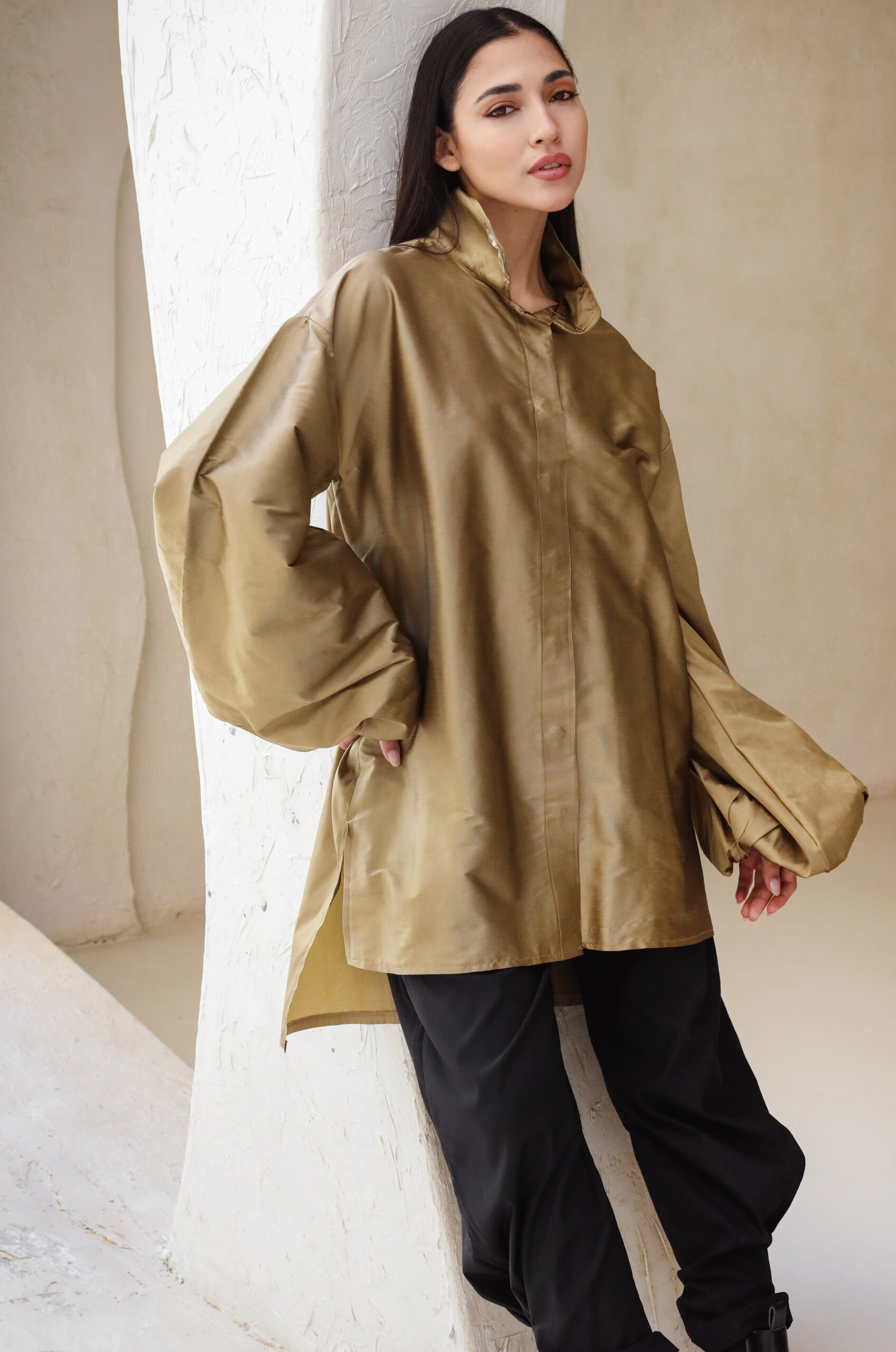 A Royal piece with crystal embellishments for your special occasions in exquisite taffeta fabric. The blouse comes in one size up to 80 kg