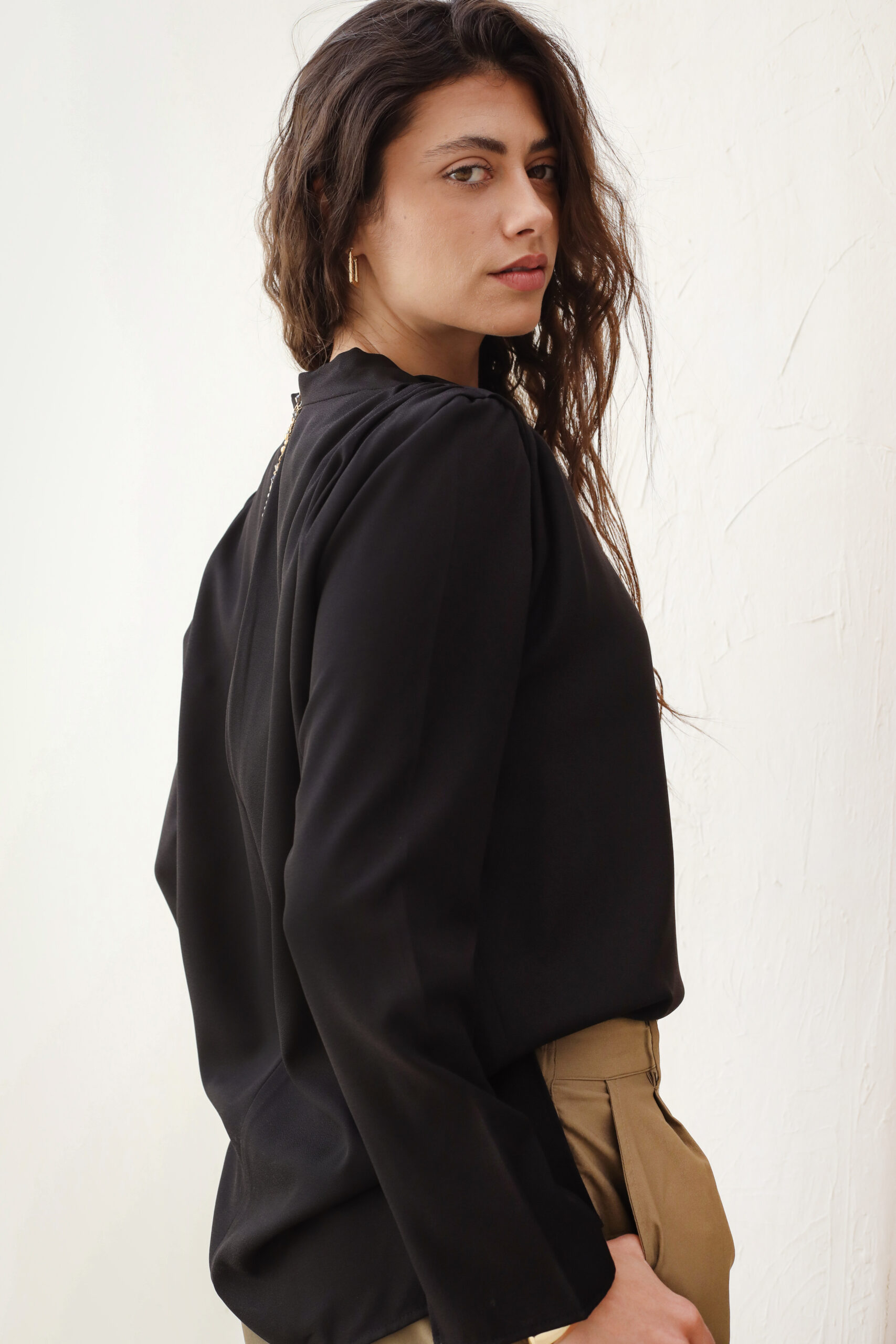 A romantic piece with soft drapes for an elegant spring look