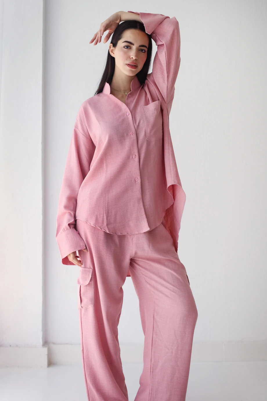 A versatile linen set with cargo pants and comfy shirt that will serve as your TO GO outfit.