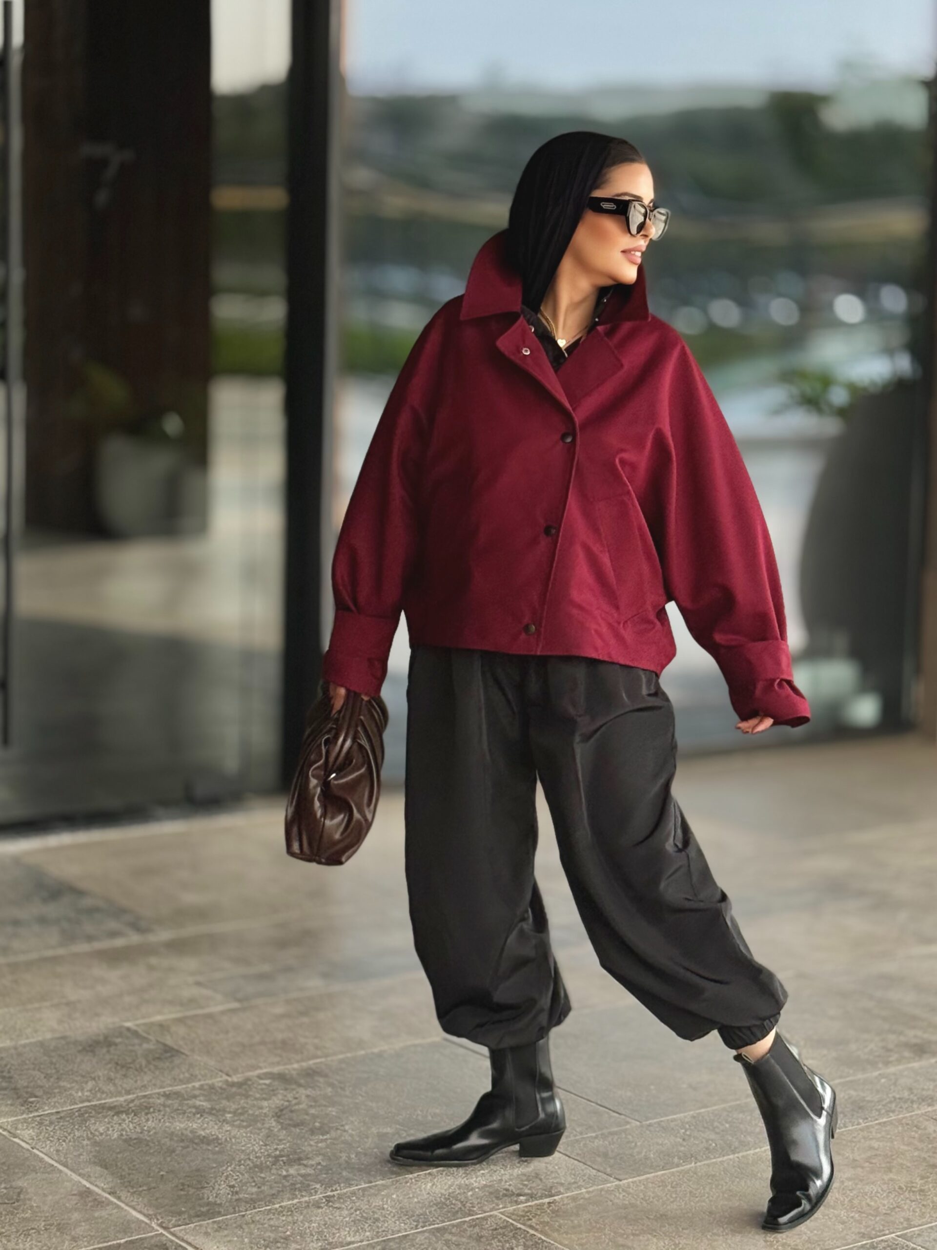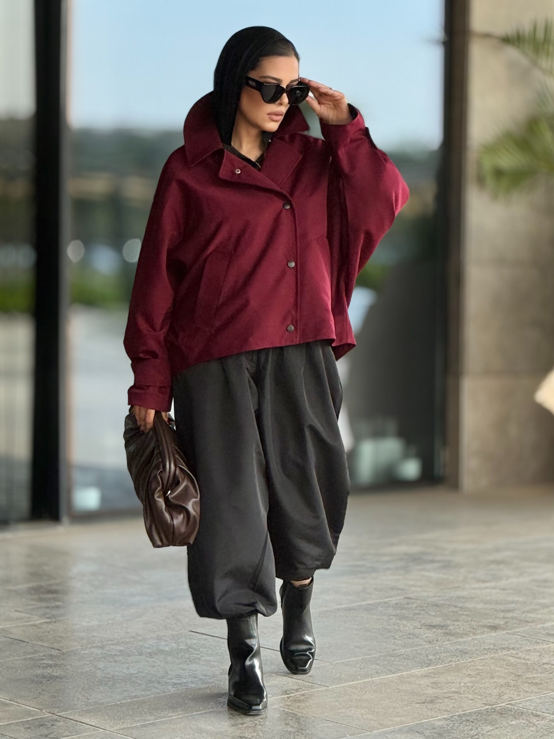 Modern, artistic and versatile. A two pieces set with an effortlessly stylish jacket and balloon pants