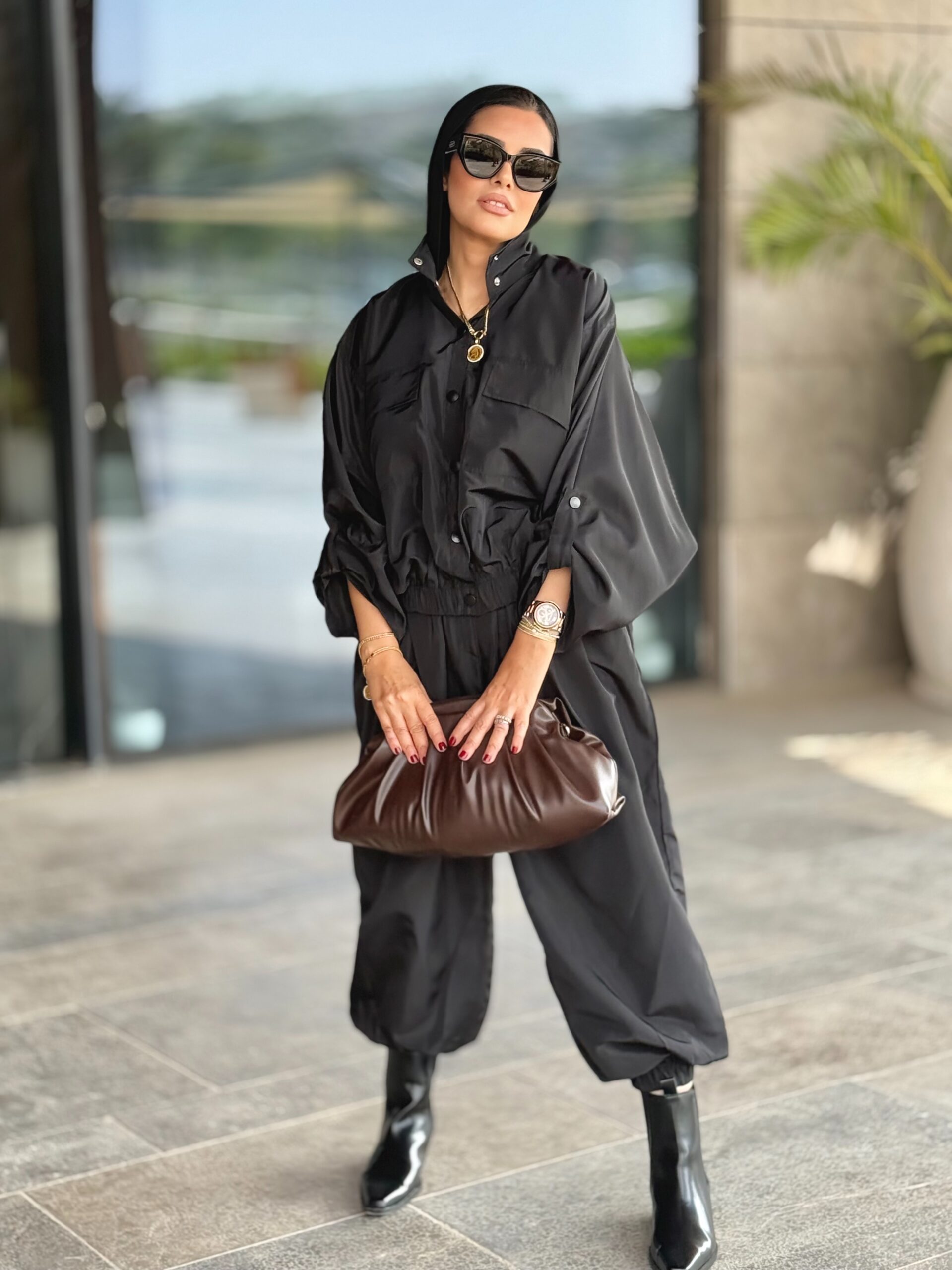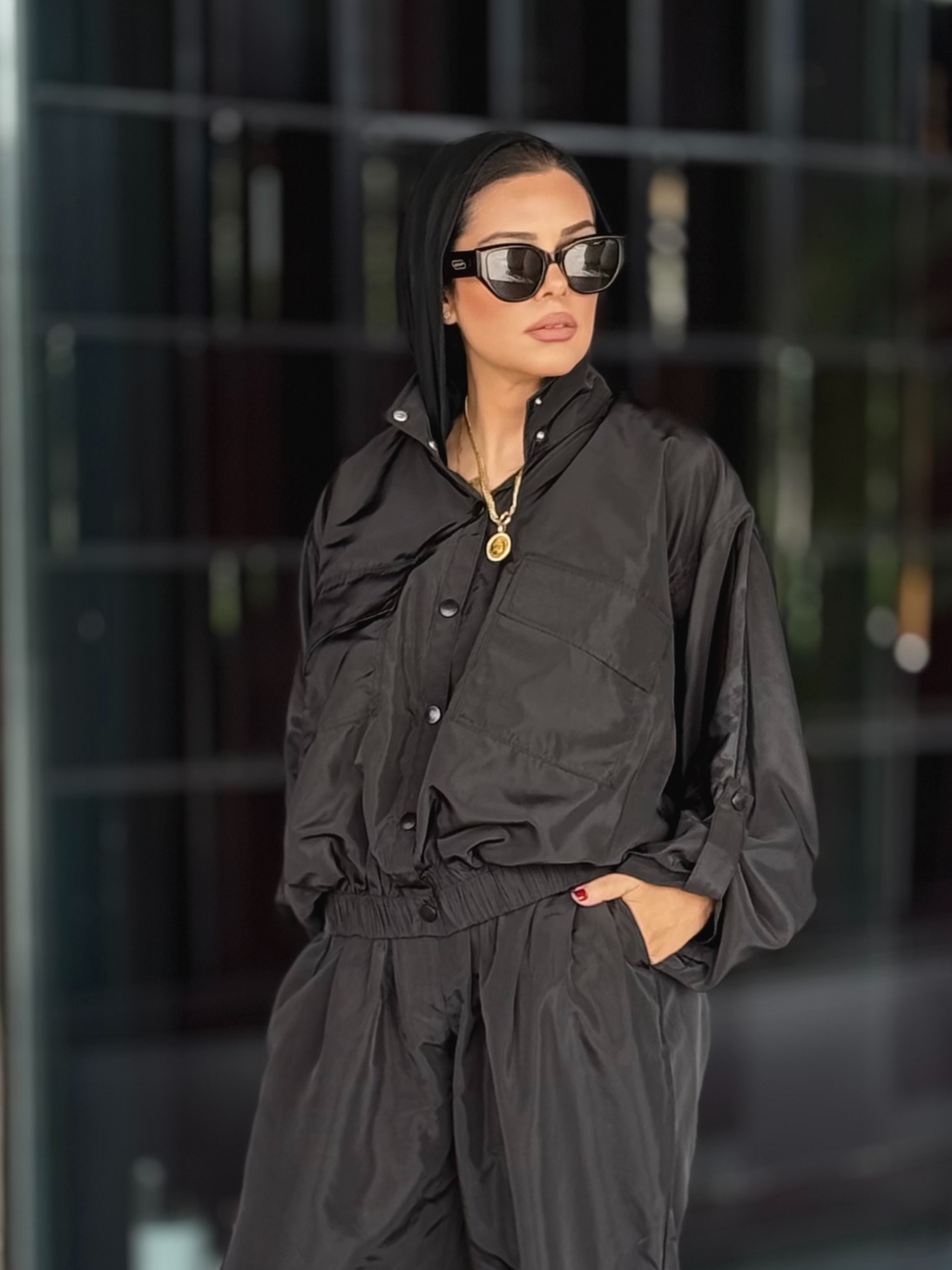 Modern, artistic and versatile. A two pieces set with an effortlessly stylish jacket and balloon pants
