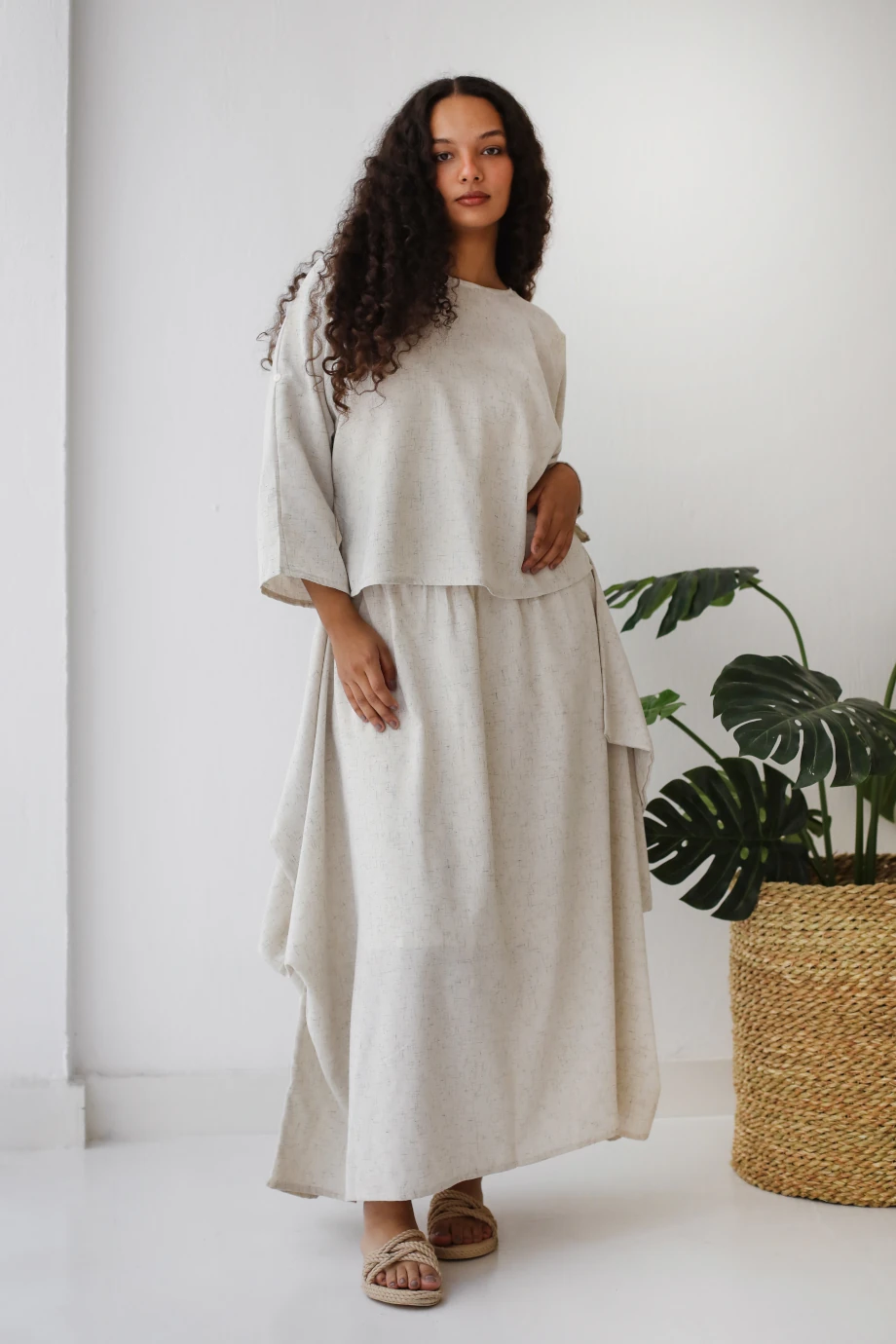 This Romantic Linen Set with its flowy draped skirt is your ultimate summer staple.