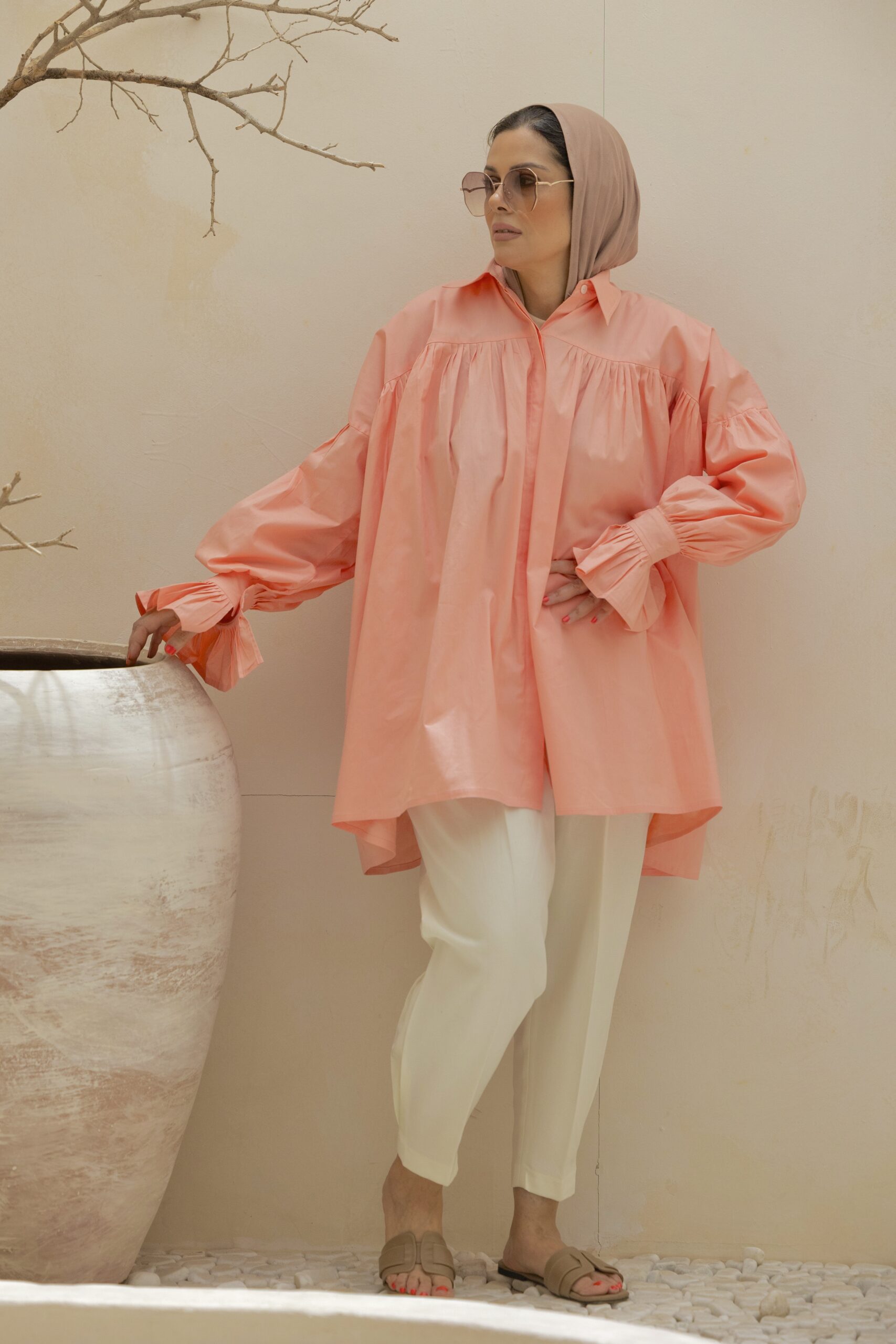 The perfect summer shirt in pastel colours. oversized fit that comes with a belt for waist definition